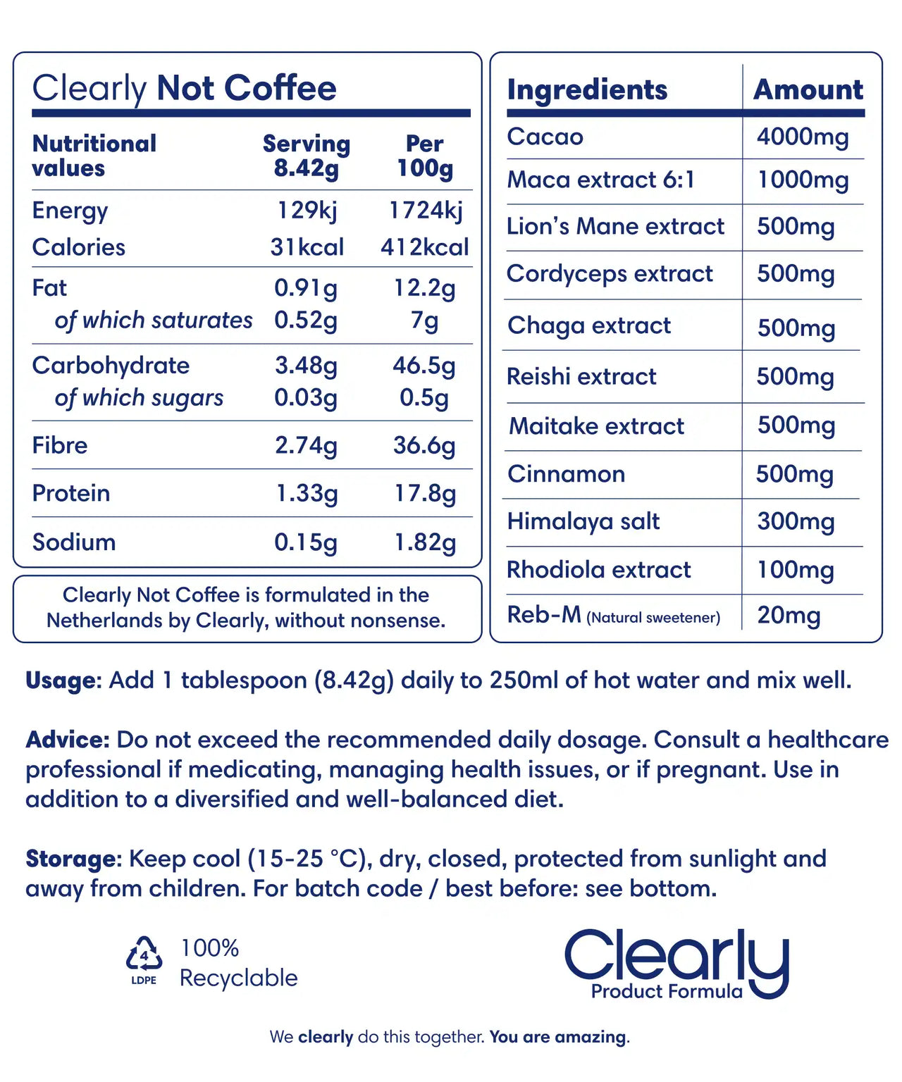 Final production always takes place in the Netherlands, so we stay in full control of quality and safety. We source our ingredients directly from the origin, always from specialists who are best at what they do.