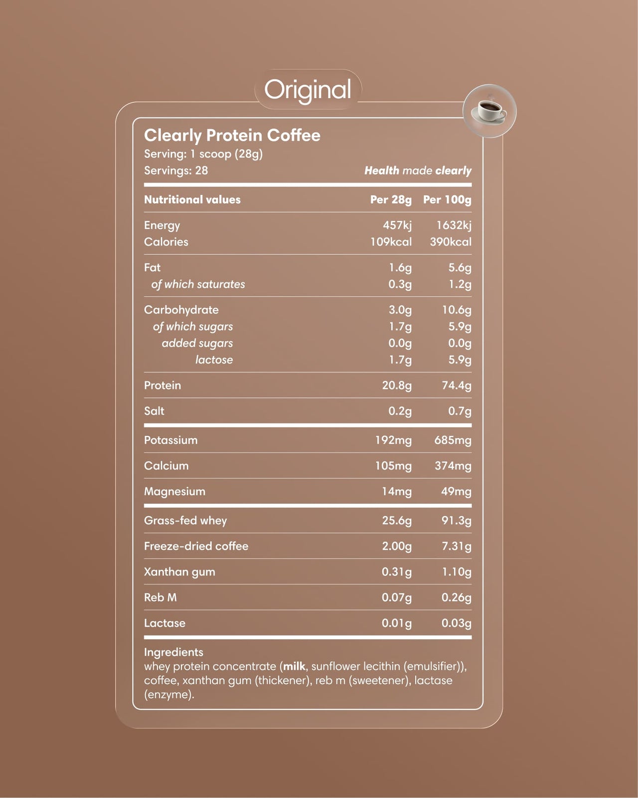 Real grass-fed whey with real Colombian coffee. A clean alternative with 21g of protein.
